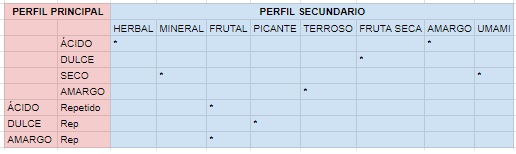 Este no es el caso, por lo que repito el sabor principal amargo solo dos veces. Luego, asignaré los perfiles de sabor SECUNDARIOS, asegurándome que el picante esté en el perfil principal dulce o ácido, según las preferencias más comunes en Colombia y de ahí me arriesgo un poco con el seco, con sabores umami y minerales y con los demás voy jugando de acuerdo a toda la información que armé previamente sobre los objetivos de la carta.